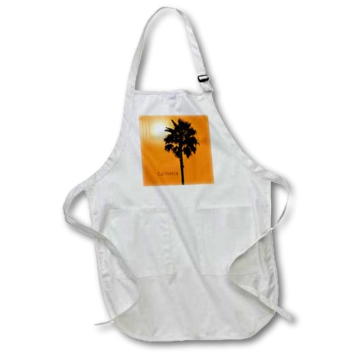 3dRose apr_20470_1 California Palm Sunny Silhouette of a Palm Tree Full Length Apron with Pockets, 22 by 30-Inch, White
