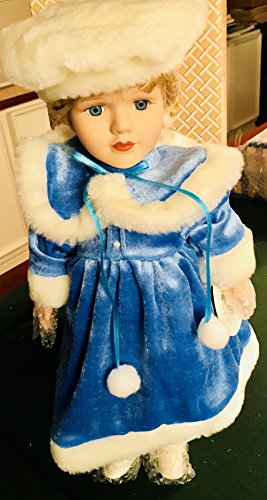 Crowne Fine Porcelain Dolls Whitney Blue Dress Blonde Hair With Stand