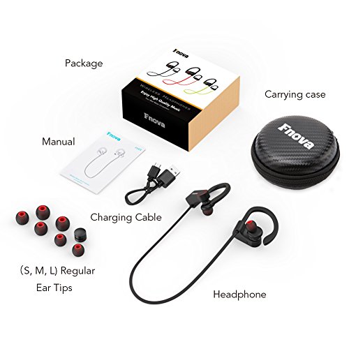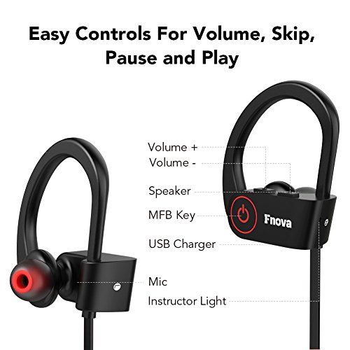-. Title : Bluetooth Headphones, Fnova Wireless Sports Earphones IPX7 Waterproof HD Stereo Sweatproof V4.1 Earbuds for Gym Running Workout, 8 Hour Battery Noise Cancelling Headsets with Built-in Mic