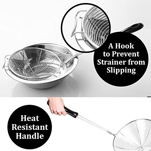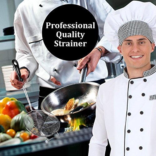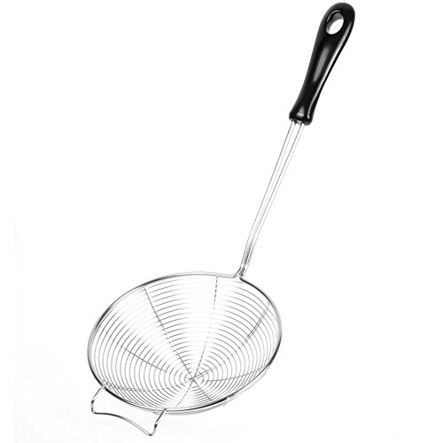 FINEST VERSATILE STRAINER - This spider skimmer is great for boiling or deep frying. The spiral wire won't easily deform and drains excess oil or liquid quickly for a better cooking result.