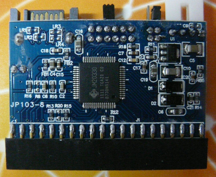 2、关键是芯片:市面上有那种便宜点的转接卡,一般不说芯片,那种是台湾SPIF223的芯片,而我们这个是美国原装JM20330的芯片。不是说那个不能用,转接这东西就看芯片,讲究的就是兼容和稳定。JM芯片保证美国原装,品质更好。市面上的三头易驱线,好的里面就是用的JM20337的芯片(优越者、力特都是)。