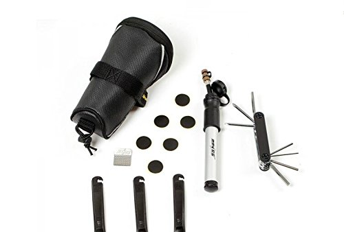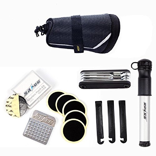 Specifications: 1. Type:Bicycle Repair Tool Kit Set 2. Color: Black 3. Saddle bag size: 19 * 10 * 9cm / 7.5 * 3.9 * 3.5in 4. Pump length: 17.5cm / 6.9in 5. Total weight: 464g / 16.4oz 6. You can put the saddle bag on mountain bike,convenient for your riding 7. Saddle bag: Durable and stain resistant leather with reflective stripes on 3 sides makes night riding safer 8. Pump: Adopting aluminium alloy tube with good heat dissipation, easy storage and quicker pumping, suitable for both Schrader and Presta valve 9. 7 in 1 tool kit: CR-V material, full function, suitable for a series of adjustment for bicycle 10. Patch: Glue free tyre patch makes the repair easier 11. Crowbar: Nylon material, strong and no damage to rim and inner tyre Package includes: 1 x Bike Saddle Bag 1 x 7 in 1 Tool Kit 1 x Pump 3 x Crowbar 6 x Patch Any problem, please feel free to contact us first and we will supply the best serviceFeature