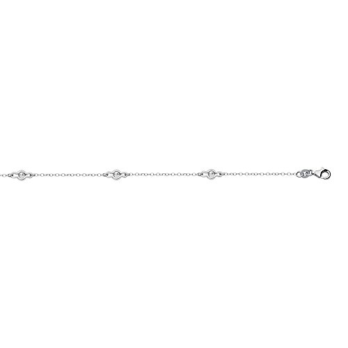 Sterling Silver Rhodium Plated Cable With Illusion Diamond Station Anklet - 10 Inch - in Sterling Silver - JewelryWeb Style: MIA351936SS - FREE gift-ready jewelry box