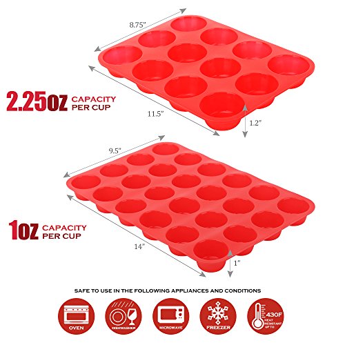 12 and 24 Mini Sizes Silicone Muffin Cupcake Baking Pan, 300 Paper Baking Cup Liners, Silicone Brush, Recipe E-book by Hanindy. Non Stick Silicone Muffin Molds, Silicone Muffin Tray Set of 2