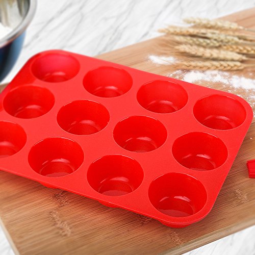 - ✔INCLUDES ALL ESSENTIALS FOR BAKING: This silicone muffin molds pan set is designed to make your baking life easy and convenient. It includes 12 regular-size silicone muffin tins, 24 mini-size silicone muffin pan, silicone baking or BBQ brush, 300 paper baking cups and free cupcake recipe E-book.