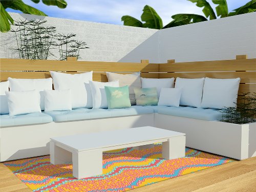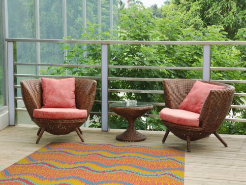 Kess InHouse Nandita Singh "Pink Waves" Orange Yellow Indoor/Outdoor Floor Mat, 4-Feet by 5-Feet