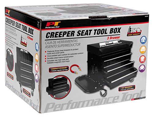 Performance Tool W85025 3-Drawer Rolling Tool Chest Seat With Magnetic Side Trays