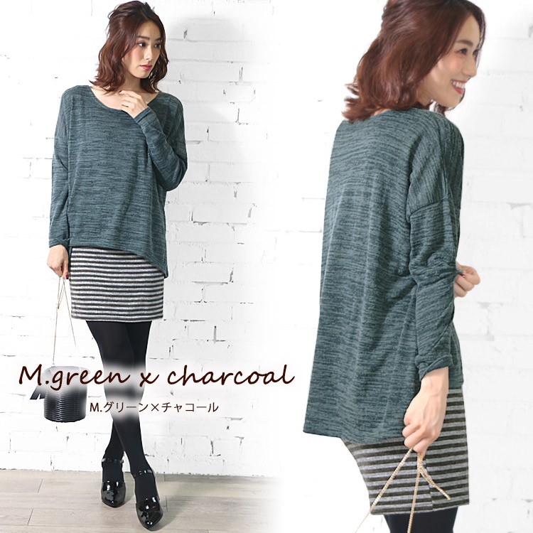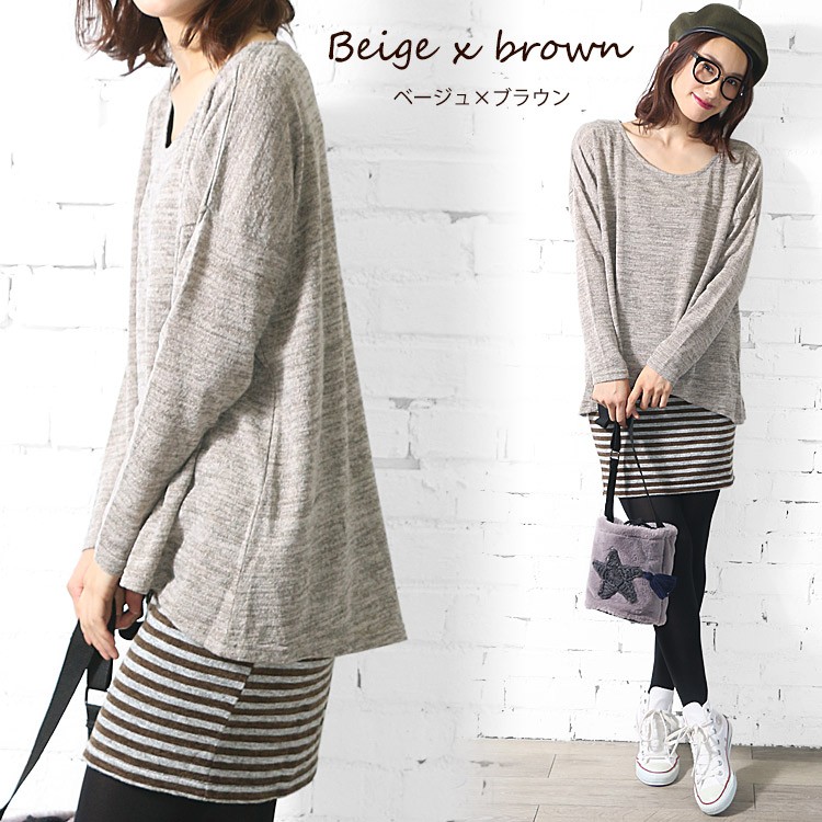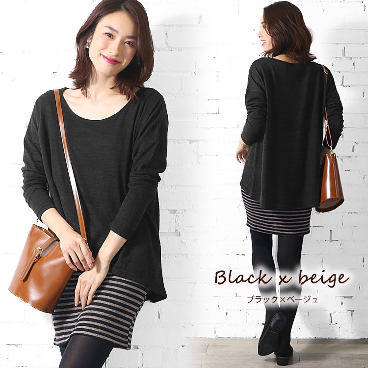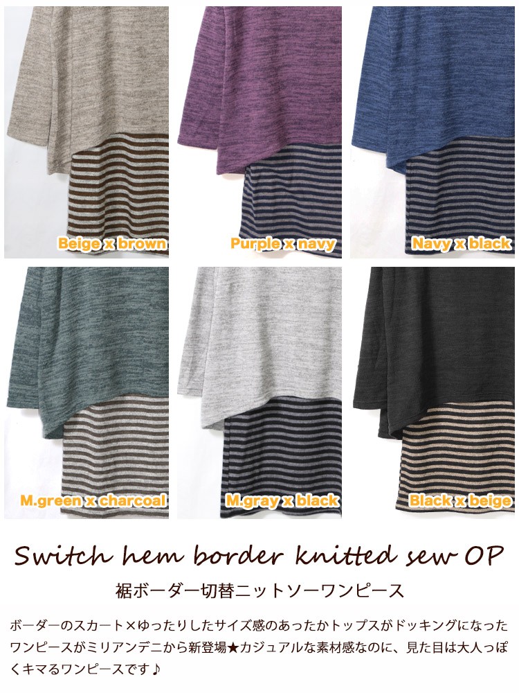 商品名:裾ボーダー切替ニットソーワンピース