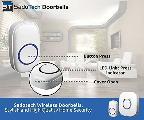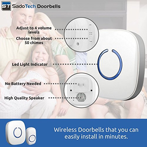 SadoTech Model C Wireless Doorbell Operating at over 500-feet Range with Over 50 Chimes, No Batteries Required for Receiver, (White), Fixed Code C Series