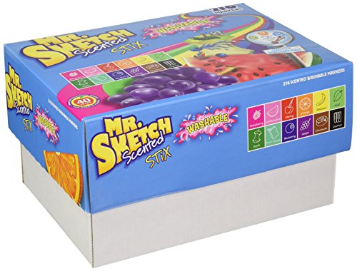 Unleash your child’s imagination into a world of cinnamon Scented Giraffes and Orange coated airplanes with Mr. Sketch Scented markers. The captivating aromas and vibrant colors are sure to inspire creativity. The Scented markers feature a thick barrel that’s easy for kids to grip and a versatile chisel tip that delivers three line widths. That means your budding artist can confidently pivot between a precision point and bold strokes. So gather around the table and Let the scents inspire your family’s creations.Feature