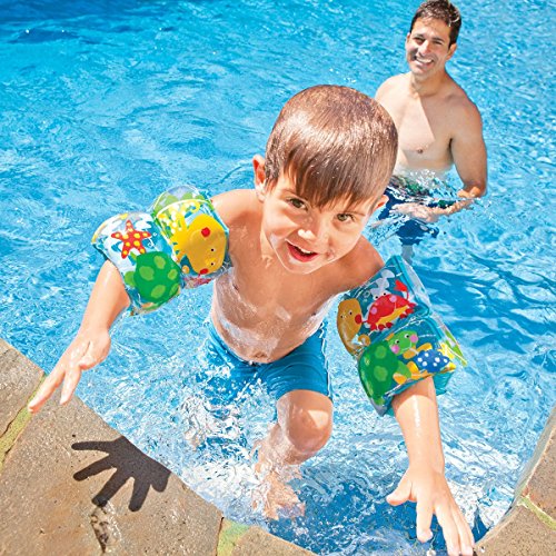 The Sea Buddy Arm Bands will provide the safety and freedom of movement a little swimmer needs to learn to swim! If you have a young one paddling, splashing and attempting to swim, try the Sea Buddy Arm Bands. These "water wings" let your eager learner tread water while staying buoyant. Each arm band has two air chambers for maximum flotation, plus each arm band is constructed of heavy-duty vinyl, so these bands are durable! Designed for ages 3-6. 0 |