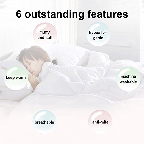 ·★SUPER THERMAL ABILITY: With our premium filling, this comforter is granted great thermal ability, always keep your bed at a cozy temperature--32 to 34℃, which is the best temperature for sleeping. Yet this comforter is lightweight, not too heavy to pressure you. Suitable for all seasons, spring, summer, autumn and even cold winter nights.