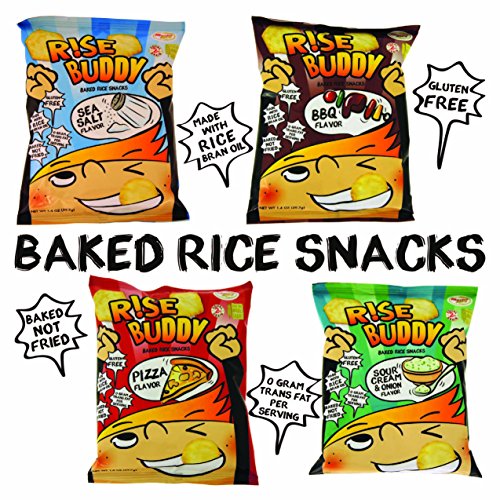 Rise Buddy VARIETY PACK Rice Crisps (3 of each flavor) : Sea Salt / BBQ / Pizza / Sour Cream & Onion (Variety, 12 pack)