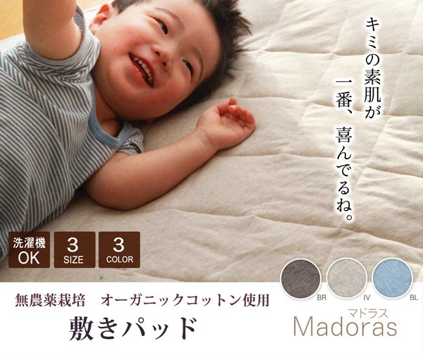 【商品名】オーガニックコットン使用 敷きパッド 『マドラス』 アイボリー セミダブル 120×205cm
