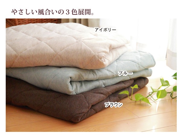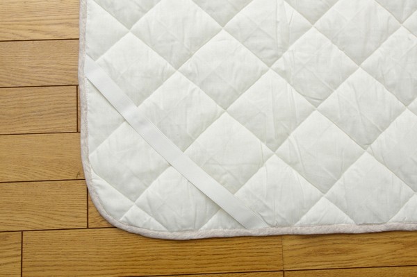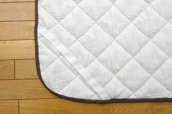 表素材にオーガニックコットンを使用。無農薬の畑で丁寧に育てられた、人と環境にやさしいコットンです。その自然な風合いは気持ちよく、肌にもとびきりの優しさです。デリケートなお肌の方やお子様にも安心です。綿の産地、インドの綿を使用しています。太番手の糸を使い、丈夫でざっくりとした風合いが特徴です。ご家庭の洗濯機で洗えるので、清潔にご使用頂けます。四隅にゴムバンド付きです。