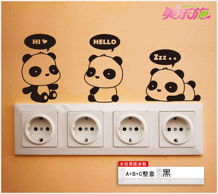 小熊猫系列开关贴 开关墙贴纸墙贴画墙纸贴开关贴客厅卧室