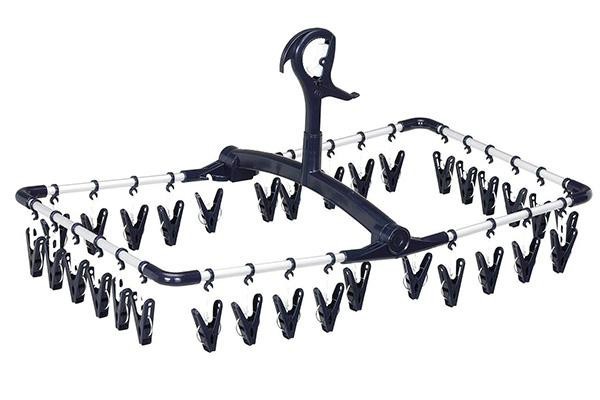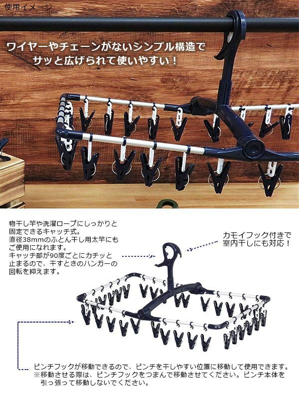 ピンチフックが移動できるので、ピンチを干しやすい位置に移動して使用することができます。吊りチェーンのない上折れタイプで、サッと広げられて使いやすい!ピンチは洗濯物にはさんだあとが残りにくい細かな凸面構造です。傷んだら、お手持ちのピンチと取り替えることができます。 |