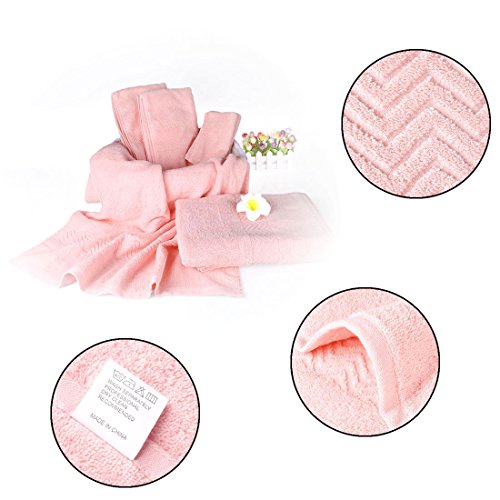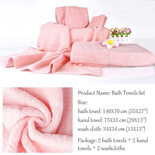 - Color: Pink, Beige, Light Blue, Dark Blue, Camel Color, Coffee Color - Main Material: 100% Combed Cotton - Size: bath towel: 140 x 70cm(55 x 27 inches)? ? ? ? ? ? ? ? ? ? ? ? ?hand towel: 75 x 33cm(29 x 13 inches)? ? ? ? ? ? ? ? ? ? ? ? ?wash cloth: 34 x 34cm(13.4 x 13.4 inches) - Made from natural materials and free from harmful chemicals and synthetic materials, safe for your family. - For best results, wash separately on first use to minimize lint, please follow the recommended care instructions on the label and keep the lint clean on your dryer.? ? Package includes: 2 bath towels 2 hand towels 2 wash cloths 0