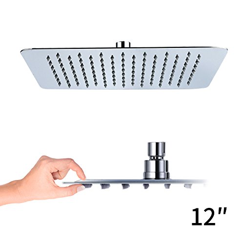 Shower Head, Rainfall High Pressure 12 Inch ,Rain High Flow Fixed Luxury Chrome Showerhead, Rotating Connector, Square Stainless Steel Shower Head High Pressure Rainfall Showerhead