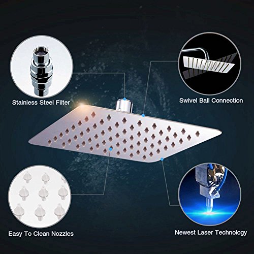 HIGH QUALITY DESIGN - This rainfall shower head is made of high quality 304 stainless steel that is plated with Chrome. The stainless steel back completes the sleek look.