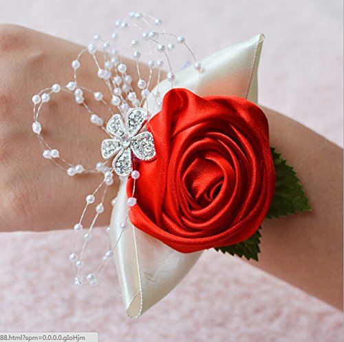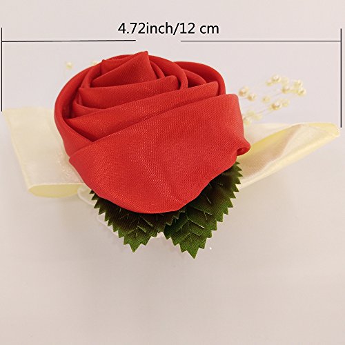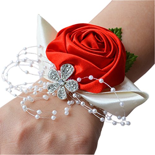 Arlai 1 pcs Wedding Bridesmaid Bride Wrist Corsage Decoration Hand Flower, Red