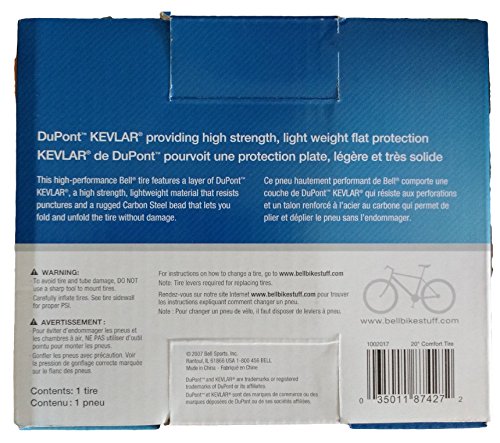-. Feature : Size : 20" / Bell Comfort Bike Tire / Red Carbon Steel Bead & Layer of DuPont KEVLAR / Tire Folds & Unfolds Without Damage / KEVLAR Layer Provides Extra Protection Against Flats