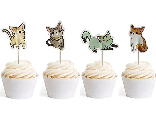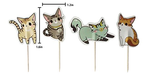 Cute Cat Cake Cupcake Toppers Picks for Wedding Birthday Baby Shower Party Decorations, Pack of 24 by Bilipala