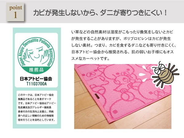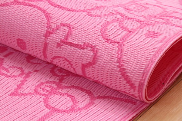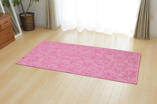 かわいらしいコリラックマをデザインしたポリプロピレンラグです。室内用のラグとしてはもちろん、レジャーシートとしてもご使用いただけます。ほこりが出にくく汚れも拭きとりやすいためお手入れも簡単です。肌触りはさらさらとしており、五指王に慣れないときには折りたたんで収納できます。