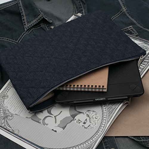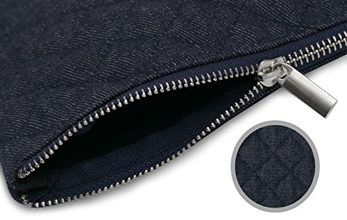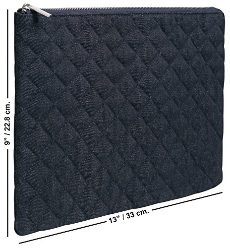 - Generous 9 x 13 inch padded and quilted denim material protects and organizes your travel items, cosmetics, paperwork and more