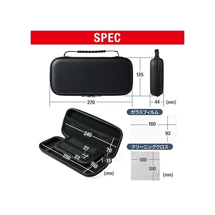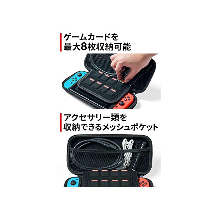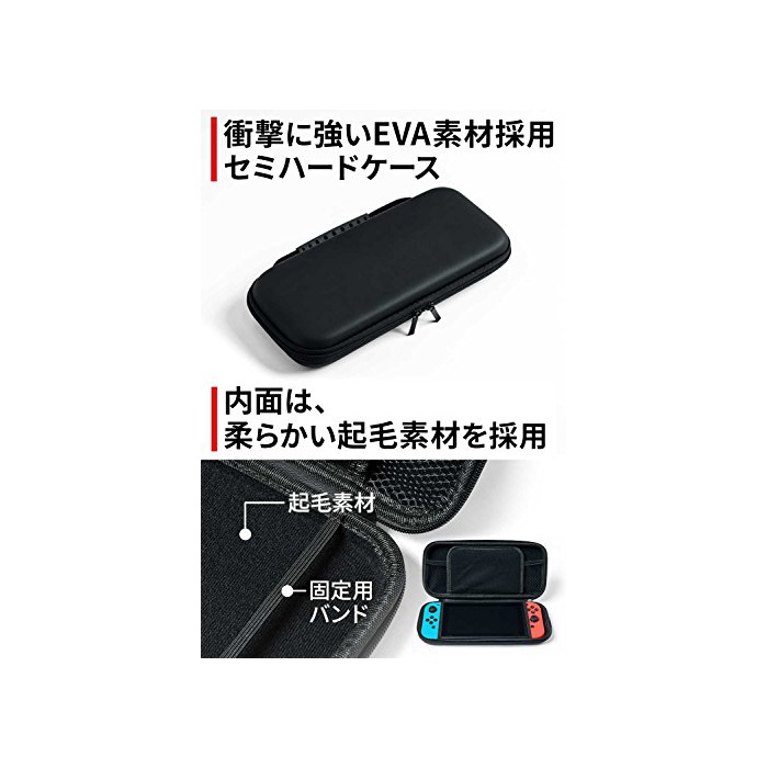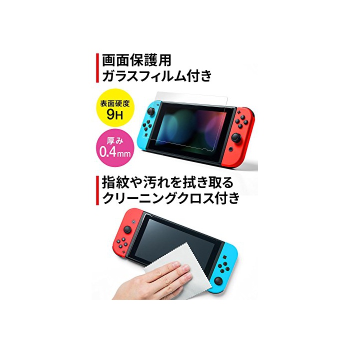원본상품명: サンワダイレクト Nintendo Switch ケス ガラスフィルム付き (高度9H厚さ0.4mm) クリニングクロス付き ゲムカド8枚納 セミハドケス 200-NSW001BK