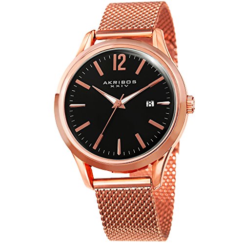 -. Title : Akribos XXIV Men's Quartz Rose-Tone Case with Rose-Tone Accented Black Sunray Dial on Rose-Tone Mesh Stainless Steel Bracelet Watch AK920RG