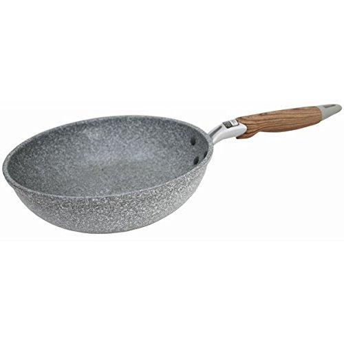 -. Title : 木柄調の取っ手と大理石風のマーブルコートが優しい風合いのIH対応 深型フライパン24cm W-227
