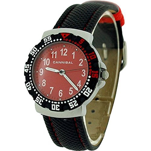 -. Binding : Watch -. Brand : Cannibal -. Color : Red -. Department : Unisex-child -. EAN : 5051496009218 -. Feature : Material Strap, Red Dial / Case Material: Stainless Steel and Resin / Clasp Type: Strap Buckle / Movement Type: Quartz / Watch Shop is a leading retailer of brand name designer watches in the UK -. Label : Cannibal -. Manufacturer : Cannibal -. Model : CJ091-06 -. MPN : CJ091-06 -. PackageQuantity : 1 -. PartNumber : CJ091-06 -. ProductGroup : Watch -. ProductTypeName : WATCH -. Publisher : Cannibal -. Studio : Cannibal -. Title : Cannibal Active Red Dial & Leather Strap Children's Watch CJ091-06