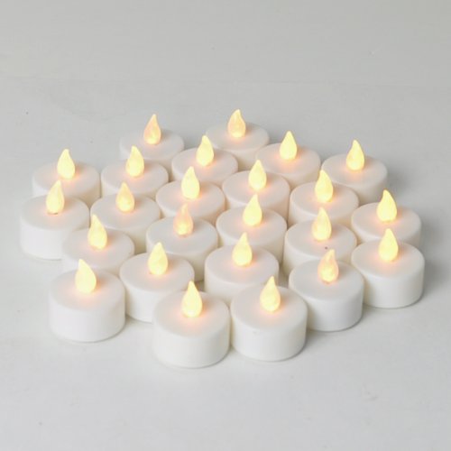 - Feature : Battery-powered LED tealight candles provides realistic Amber flickering effect / Standard size fits into any votive or tealight holder / Energy-saving, smoke-free, flameless LED lights, zero carbon emission / On/off switch for easy & convenient operation / 24 candles in one package