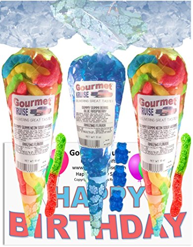 -. Title : Happy Birthday Series Bright Sour Worms And Blue Raspberry Gummi Gummy Bears (NET WT 31 OZ) (Pack of 3) In 1 Box Gourmet Kruise Signature Gift Bags