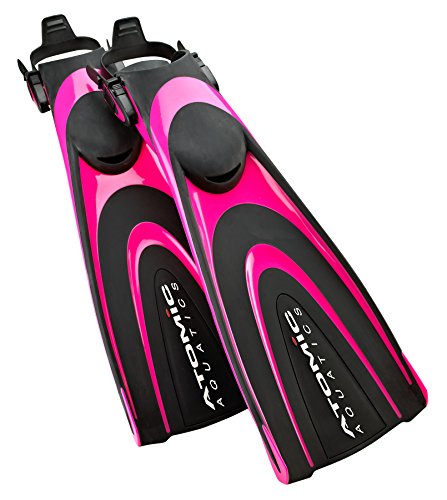 Studio : Atomic Aquatics Publisher : Atomic Aquatics Binding : Sports Product Description BladeFins are created using structural fame designs used in aircraft and Indy race cars. Atomic BladeFins are engineered for power and thrust. The design consists of Power-Loop Monocoque Structure, Foot Pocket Power Plate, Power Rail, and Vertical Stabilizers. Atomic BladeFins are designed to allow divers to cruise through water, maximize kicking power, keep fin tracking straight up and down with every kick, and of course stylish with the fin and buckle. 0