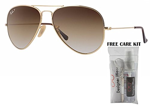 Currently one of the most iconic sunglass models in the world, Ray-Ban Aviator Classic sunglasses were originally designed for U.S. aviators in 1937. Aviator Classic sunglasses are a timeless model that combines great aviator styling with exceptional quality, performance and comfort. With a classic frame, you can see the world through a variety of polarized lens colors including crystal brown, crystal green, G-15 polarized and more that provide optimum visual clarity and 100% UV protection. Let Designer iWear add some instant fun to your wardrobe! This FREE complimentary care kit arrives to you in authentic Designer iWear packaging so you can buy with confidence. This super special kit includes authentic Ray-Ban RB3025 frames, Designer iWear cleaning spray and cloth, mirror and mini screwdriver, to keep your new frames as fabulous as the day you bought them! All Sunglasses Come complete with Original Manufacturers Case, Cloth, and Booklet/Authenticity card when applicable. Please note case style and or color can vary.Feature