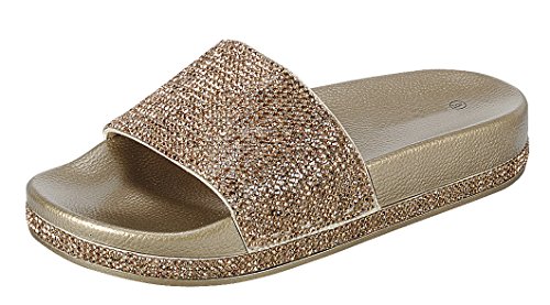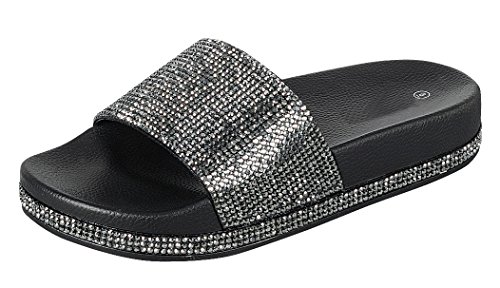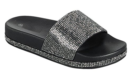Cambridge Select Women's Open Toe Crystal Rhinestone Studded Glitter Slip-On Flat Slide Sandal