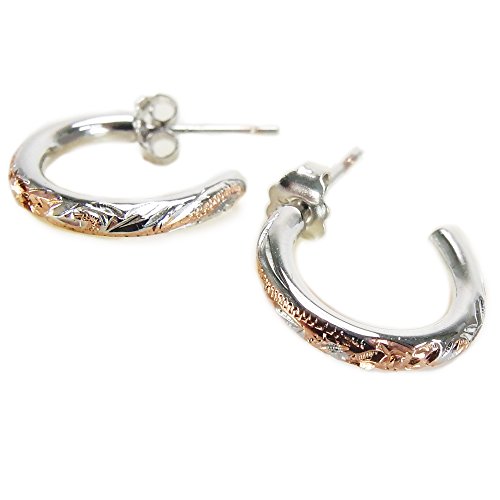 -. Feature : 原産国:アメリカ / 細く小振りなキャッチ式フープピアス / 素材:シルバー925 ピンクコーティング / デザイン:スクロール マイレ プルメリア