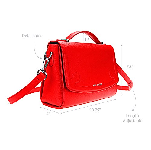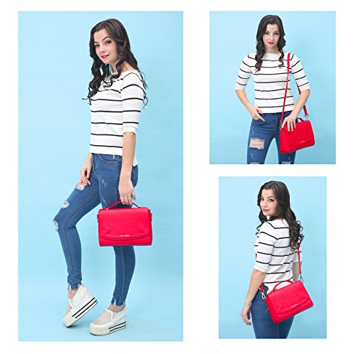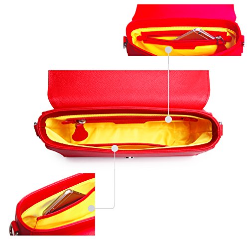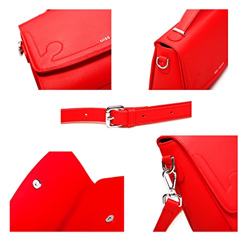 -. Feature : Your New BAG OF CONFIDENCE vibrant red color leather is beautifully stitched by hand, w/ sleek silver tone hardware. Designed in New York City. / BRIGHTEN YOUR LIFE with bright sunshine yellow color lining inside, brings you positive energy every time you open your Miss Locker bag! / 3 in 1 design: use it as handbag, cross body bag or shoulder bag. Strap is fully adjustable & detachable, w/ firmly padded handle, carry anyway you want! / SECURE YOUR BELONGINGS: top flap & magnetic closure provides double protection for your belongings. Safe & Secure. / EASY to ACCESS pockets: Inside zipper pocket, front LARGE open pocket. 1 back cellphone pocket.