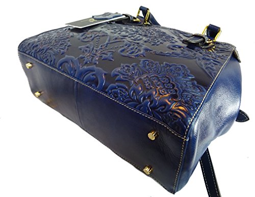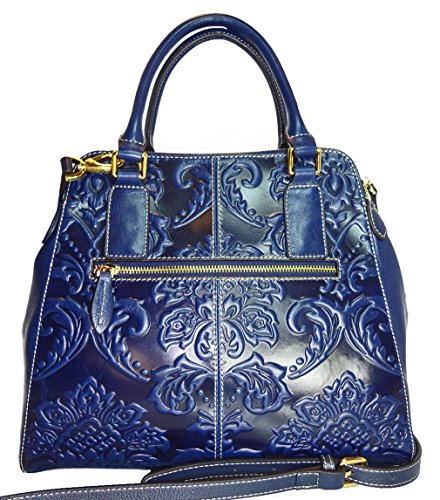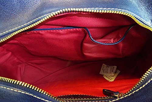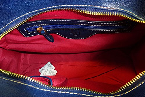 ALC Zinnia, Italian Leather 3-ZIP Compartment Tote w/ Strap- Blue