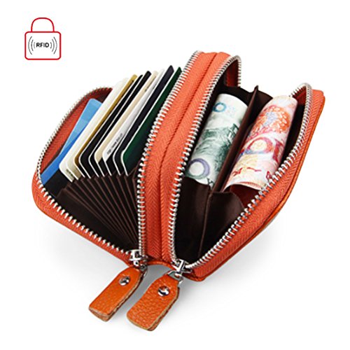- LARGE CAPACITY CARD HOLDER. The card holder has a lot of room inside. 2 x Zippered compartments, 9 individual cards slot, and 2 cash slot keep your cards, coins, credit cards, coupons, tickets and cash well organized. Make life more convenient