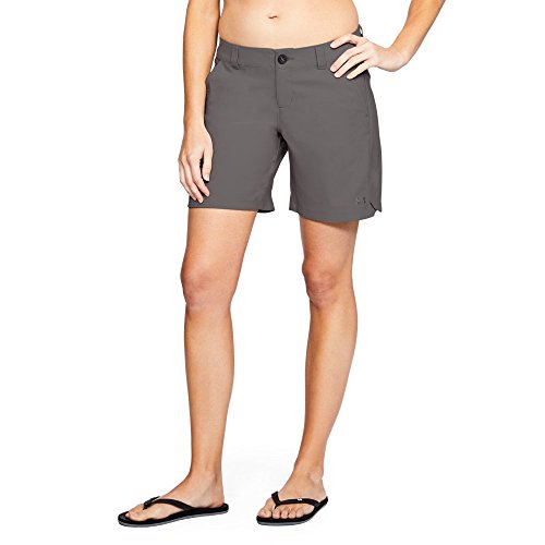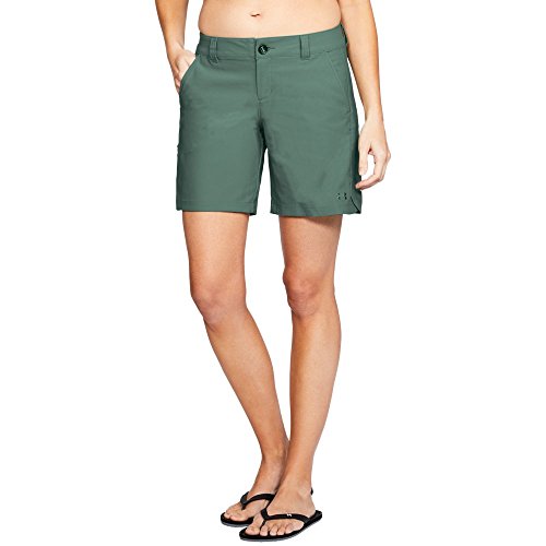 Venture deep down by the lake and keep your cool in these stretchy Inlet Shorts. This brand is a member of the Sustainable Apparel Coalition. Fitted fit is snug, but not tight, for next-to-the-skin support without the squeeze of compression. Moisture Transport System wicks perspiration away from the body and towards the surface where it can evaporate. Luxuriously soft fabric delivers supreme comfort for performance. Belt loop waistband with elasticized interior. Zip fly with button closure. Slash hand pockets. Button-snap cargo pocket at right. Rear patch pockets with snap closure. Embroidered brand marking at left hem. Scalloped crossover hem. 100% polyester. Machine wash, tumble dry. Imported. Measurements: Waist Measurement: 28 in Outseam: 16 in Inseam: 7 in Front Rise: 9 in Back Rise: 13 in Leg Opening: 20 in Product measurements were taken using size 2, inseam 8. Please note that measurements may vary by size.Feature