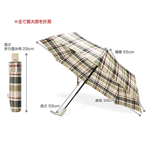 -. Feature : アイテム&生産地:折りたたみ雨傘(中国製) / 素材:アルファイバー、ポリエステル、スチール / サイズ(約):閉じた全長27.5cm、開いた時の直径100cm / 持ち手(約):中棒からハンドル底部まで54cm、ハンドル6cm / 重さ:約340g