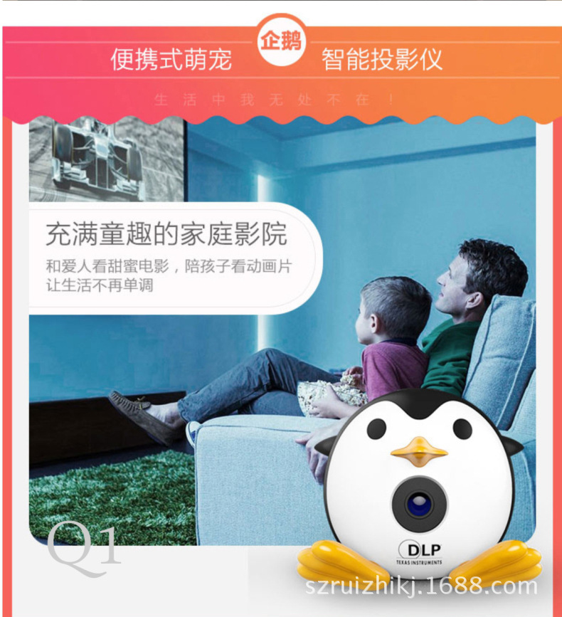 新款Q1萌宠时尚家用微型投影仪便携迷你投影机DLP高清厂家直销
