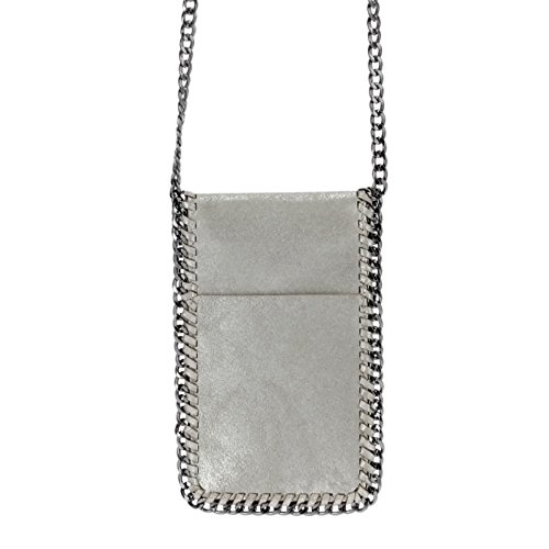 Product Description This designer cell phone crossbody purse is the perfect size to fit smart mobile phones such as Apple iphone 7S, 7S Plus, 6S, 6S Plus, Samsung Galaxy Note 5,Note 4,Note 3,Galaxy S3,S4,S5,S6,S7 and most other phones. Fashioned with luxurious soft vegan leather and elegant chain trim with a chain cross body strap, this compact bag is perfect for travel and everyday use. The purse has an exterior flat pocket and room for a key, small lipstick, and other necessities. Soft, lined protective interior. 0