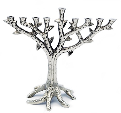 Menorah Tree Of Life Contemporary Textured Chrome Design for Chanukah