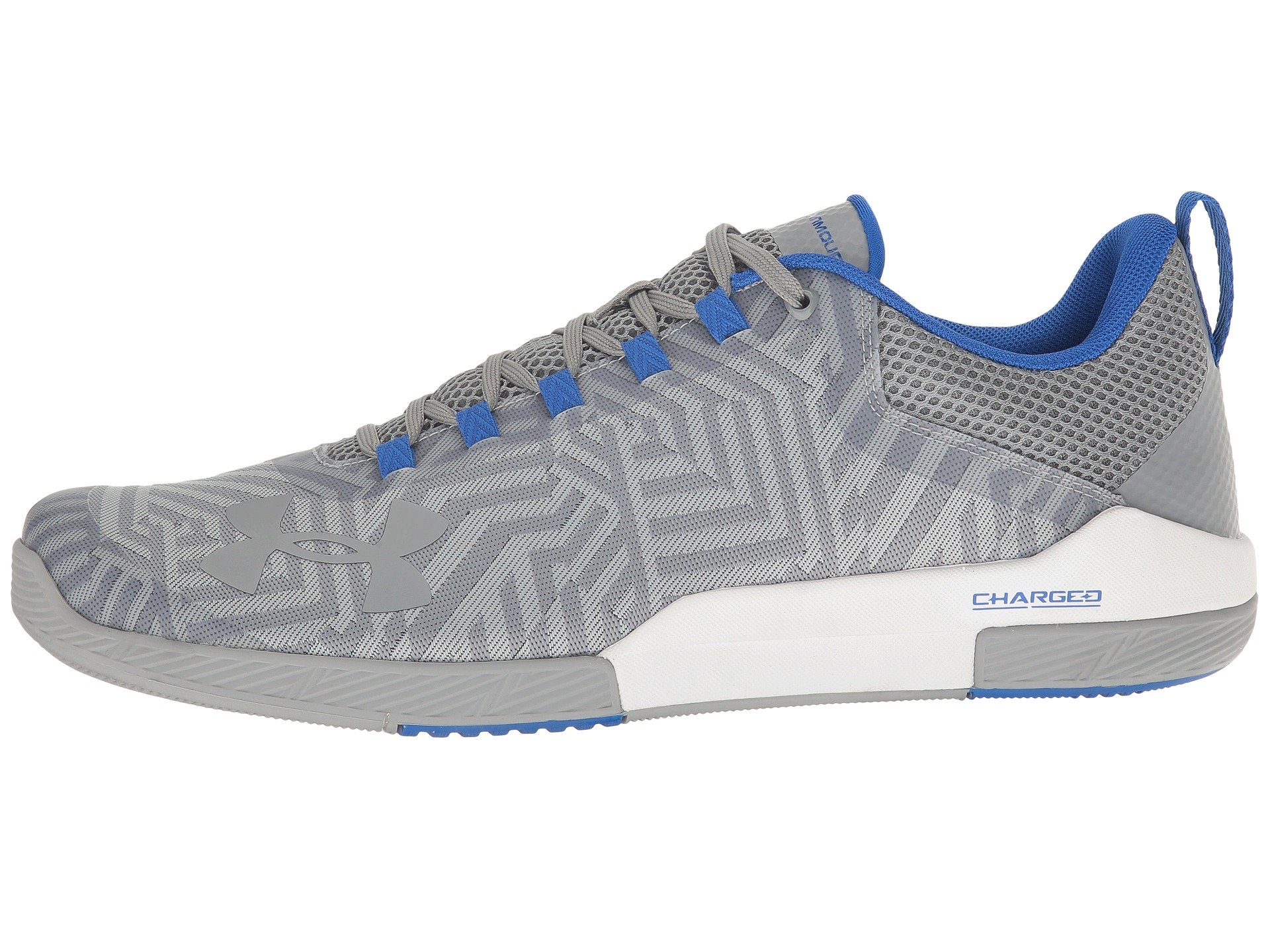 | Product Information SKU: #8798902Get the most out of each and every workout in the Under Armour? UA Charged Legend TR Stripe cross-training shoe.Lightweight jacquard upper with TPU overlays for enhanced support and durability. Lace-up closure. Heel pull loop.External heel structure for increased stability and lockdown. Lightly padded tongue and padded collar. Breathable fabric lining offers a great in-shoe feel. Molded rubber sidewalls boost durability during lateral movements. Drop-in midsole acts as a dual sockliner and provides optimal performance. Full-length Charged Cushioning? midsole supplies the ultimate in responsive cushioning. Low-profile midsole design. Differential: 4 mm.Micro-circular outsole pattern for superior traction over all surfaces. Strategically-placed flex grooves for a more natural feel. Imported. Product measurements were taken using size 11, width D - Medium. Please note that measurements may vary by size.Weight of footwear is based on a single item, not a pair.Measurements: Weight: 13 oz |