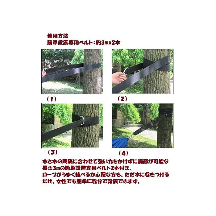 수납대(건착대)에 보관하고, 가방,차나 오토바이로 폰과 넣고 하이킹이나 캠프 에서의 나무그늘에서 여유만만 낮잠과 활약시키거나,갠 일에 집의 뜰에서 여유만만 독서로 사용하거나 용도는 가지각색.여자나 아이라해도 해먹(hammock)로 텐션은 업!