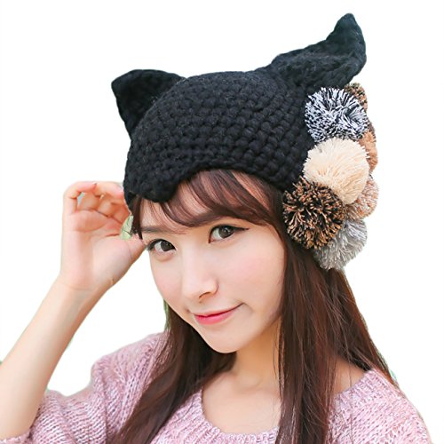 -. Title : n'CREA かわいい 猫耳 ネコ耳 ニット帽 ネコミミ 猫 ネコ 耳 ニット 帽子 小悪魔 黒 ブラック